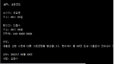 내용증명 작성 예시